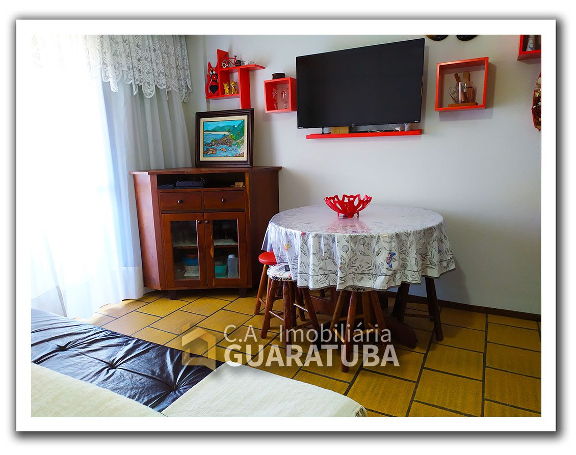 Com 1 quarto, sala/cozinha, banheiro, sacada e garagem para 1 carro pequeno. 1 quadra da Praia Central.