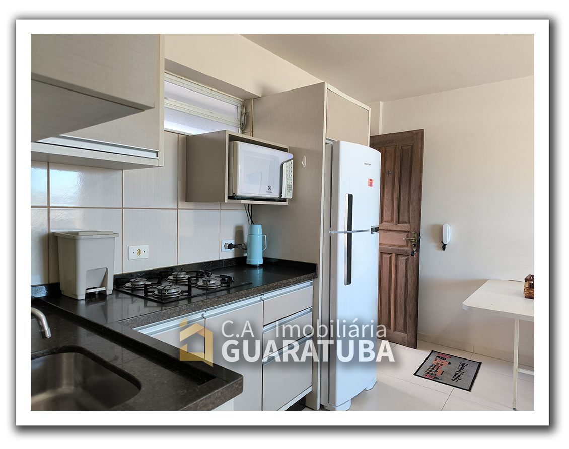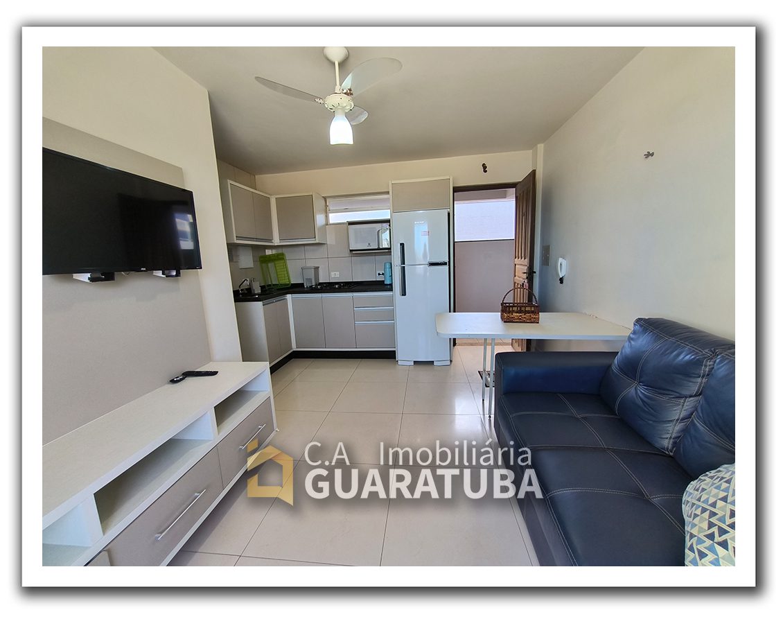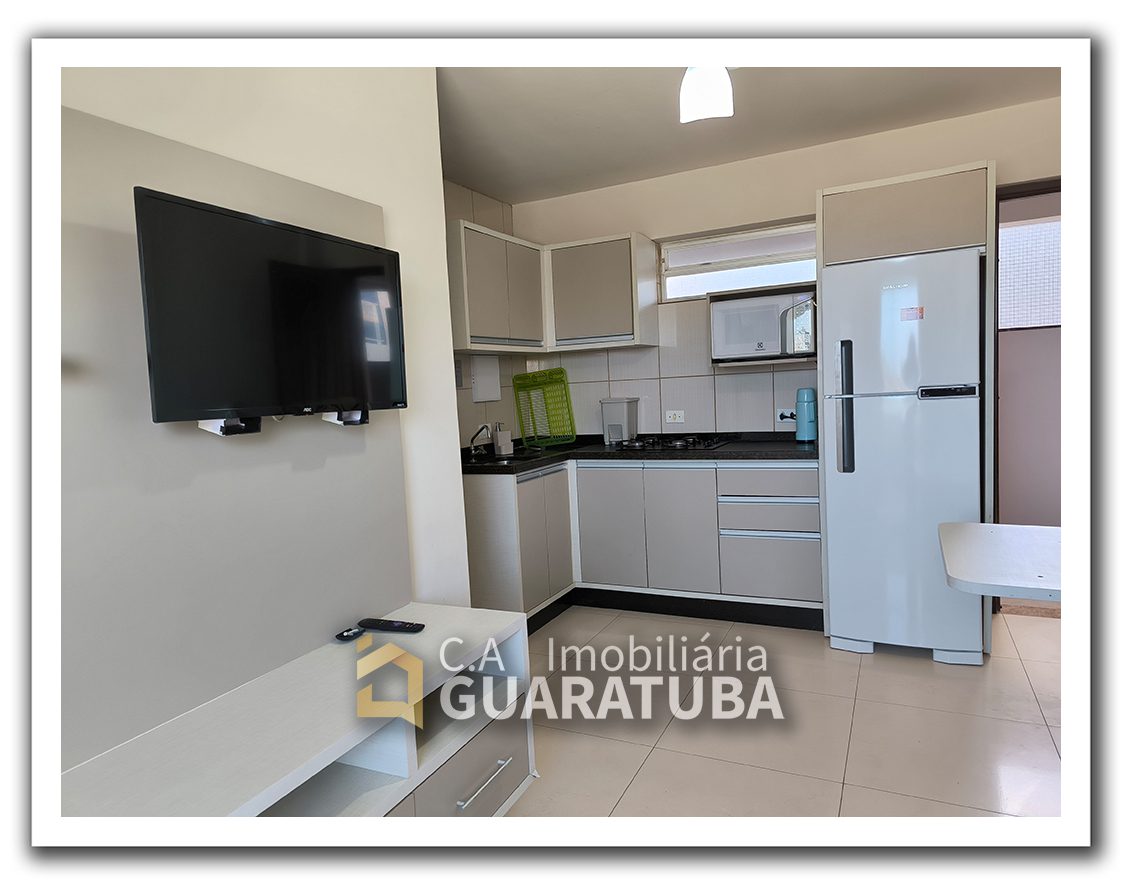 Com 1 quarto, sala/cozinha, 1 banheiro, sacada e garagem para 1 carro pequeno. Apenas 1 quadra da Praia Central.