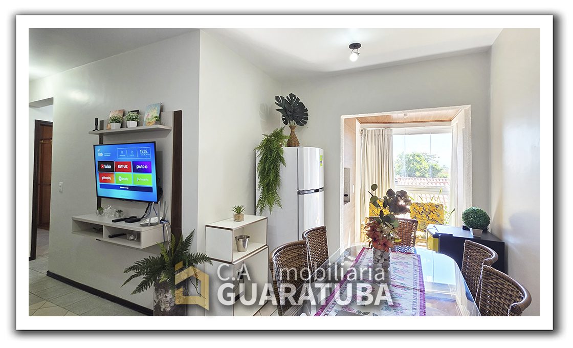 Apartamento para 6 pessoas, contendo 3 quartos (sendo 1 suíte), sala, copa, cozinha, sacada com churrasqueira, banheiro social, garagem para 1 carro. Condomínio com piscina, quadra de esportes. Apenas 1 quadra da praia.